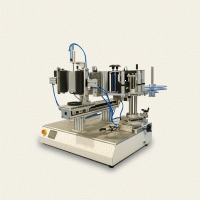 "Предназначен для двухстороннего этикетирования (спереди/сзади) бутылок с плоской, круглой и квадратной поверхностями. Этикетировочный полуавтомат предназначен для нанесения самоклеящейся этикетки на тару с двух сторон и оснащен дополнительными узлами приглаживания и термотрансферным датировщиком.Характеристики: