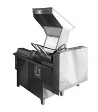 Величина нарезаемых кусков зависит от размеров ножевых рамок: 24х24мм, 36х36 мм, 48х48 мм (путем перестановки ножей в пазах рамки). Регулировка длины нарезаемых кусков плавная, регулятором скорости подачи гидроцилиндра.