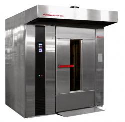 | Печь хлебопекарная ротационная "Муссон-ротор" модель 99М-01, 99М-02.Печи без перенастройки воздушных потоков в пекарной камере обеспечивают выпечку высококачественной продукции широкого ассортимента хлебобулочных изделий: отличную пропекаемость, высокий подъем, равномерно окрашенную поверхность, идеальный глянец.«Муссон-ротор» модели 99 М-01 и 99 М-02 имеют неразборную цельносварную конструкцию, лицевая панель, дверь печи, стенки, потолок, пол, порог пекарной камеры выполнены из нержавеющей стали. «Муссон-ротор» модели 99 МР-01 и 99 МР-02 имеют разборную конструкцию, позволяющую заносить их в производственные помещения через любые стандартные дверные проемы. Облицовка, дверь печи, стенки, потолок, пол, порог пекарной камеры выполнены из нержавеющей стали. Система управления печами построена на базе микропроцессорного контроллера с применением пускорегулирующей аппаратуры отечественного и импортного производ-ства, обеспечивающей минимальное техническое обслуживание, высокую надежность в эксплуатации, максимальный набор функций управления печью: •ввод, редактирование, хранение и воспроизведение в автоматическом режиме до ста 10-шаговых программ выпечки с возможностью задания технологических параметров в каждом шаге •корректировка программ во время выпечки •задание и индикация прямого и обратного отсчета времени выпечки •отображение текстовой информации о режимах работы, аварийных ситуациях и производимых манипуляциях. Фронтальное расположение зоны обслуживания позволяет устанавливать печи в ряд с минимальным зазором 5 см. Возможность перехода с газа (дизельного топлива) на электричество путем замены теплообменника на ТЭНовый блок (и наоборот). Верхний привод вращения стеллажной тележки, низкий порог пекарной камеры, короткий пандус, верхний узел фиксации тележки позволяют избежать встряски тестовых заготовок при закатывании стеллажной тележки, исключают ее смещение во время выпечки. Высокая нагрузочная способность подшипникового узла платформы за счет использования самоориентирующегося упорного подшипника, погруженного в масляную ванну, позволяет выпекать хлебобулочную продукцию в режиме интенсивной эксплуатации. Предусмотрен реверс вращения тележки. Эффективная схема циркуляции воздуха с центробежным вентилятором создает в пекарной камере однородный воздушный поток оптимальной скорости, что позволяет получать равномерно пропеченные изделия широкого ассортимента с равномерно окрашенной поверхностью без перенастройки жалюзи. Использование опции «предразогрев» позволяет минимизировать тепловые потери при закатывании тележки с заготовками в пекарную камеру и, соответственно, сокращает время выпечки. Дозированное насыщение пекарной камеры необходимым количеством пара обеспечивает мощная система пароувлажнения лоткового типа, размещенная непосредственно в потоке горячего воздуха. Безопасность в эксплуатации. Технические характеристики: 99М-01/99М-02 Производ-ть, шт./за одну выпечку: - хлеб пшеничный, ржано-пшеничный (хлебная форма № 7, №10 ГОСТ 17327-95) 180 - батон 0,5 кг (10 шт.на противне) 160 - батон 0,3 кг (12 шт.на противне) 216 - штучные изделия, массой 0,15 кг, (24 шт.на противне) 432 Вместимость - хлебные формы № 7, №10, шт.180 - противни (плоские или волнистые, размер 600 × 900 мм) 18 Номинальная потребляемая мощность, кВт 3,2