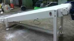 | Транспортёр ленточный наклонныйДлина рабочей части транспортёра 1950 мм, ширина ленты 350 мм, скорость движения ленты 12 м/с, потребляемая мощность 0,55 кВт, угол наклона рабочей части транспортёра 15 град., высота задней части 240 - 390 мм, высота передней части 692 - 842 мм. По пожеланию заказчика параметры транспортёра могут быть изменены.