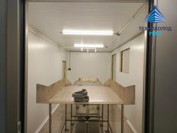 | Рыбный цех. Модульный цех переработки рыбы и икры. МЦ-ПР-12/1На базе 40-футового контейнера состоит из участка приема, потрошения, мойки рыбы и участка пробивки ястыков, засолки, инспекции и упаковки икры, снабжен необходимым оборудованием и приспособлениями. На участке переработки рыба потрошится, моется, укладывается в лотки для последующей заморозки. Ястыки через технологическое окно передаются в икорный цех, для пробивки, засолки икры, стечки, инспекции и упаковки.